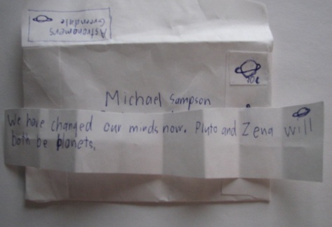 However, it all appears to be solved now, and the astronomers have changed their minds. I received this letter in the mail today … do I dare believe?