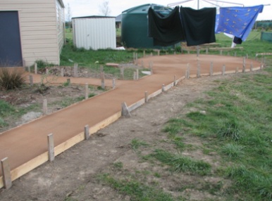 After two and a half years of being in our new house, I finally pushed go on patios and pathways. They are not dry yet, but are lookin’ great. Many thanks to the amazing team at Amazing Concrete Services Ltd for their diligent and expert work.