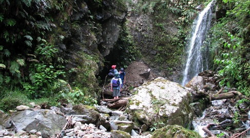 We’ve found the river bed. The Rata Falls walk involves 20 minutes or so of making one’s way up the river bed, leaping from side-to-side, and trying not to get wet!