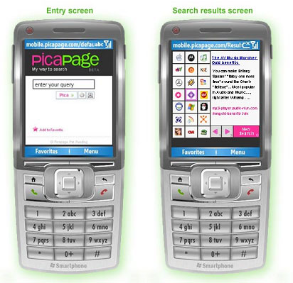 - Picapage for Mobile Search … Picapage released its mobile internet search application, for Windows Mobile 5 and Symbian 9.1 and 9.2 devices. Results are displayed graphically via an icon, with more information in a text part of the screen. Picapage