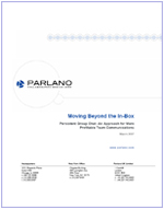 As I noted last week, Parlano, Inc. released a new White Paper entitled Moving Beyond the Inbox: Persistent Group Chat – An Approach for More Profitable Team Communications. Jeff Schultz, the SVP of Worldwide Marketing at Parlano said that he is “anxious for feedback.” Okay already, you don’t have to ask twice π