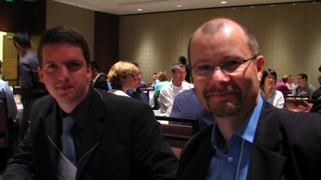 Just after breakfast, I had a couple of minutes with Stephan (CEO) and Lars (COO) from Mindquarry, an open-source team collaboration software platform. The goal of the company is to deliver knowledge resources to knowledge workers anywhere, anytime it is required. They don’t it as competing with groupware, and don’t deliver email capabilities. Stephan and Lars said that its product collects tools that are unique to collaborate … eg, wiki (for collecting knowledge), shared files (to avoid email attachments), version control on files, synchronization of files to the desktop (via a desktop client on Mac OS, and a Java client on Linux and Windows), mailing lists and online forums, and offline work (for files and tasks today, more to come in the future). Integration of instant messaging, voice mail and web meetings are on the roadmap.