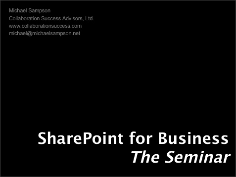 I’m presenting a shortened version of the SharePoint for Business Seminar in two cities in New Zealand in the next two weeks. The seminar is based on the SharePoint for Business White Paper I released in May 2007.