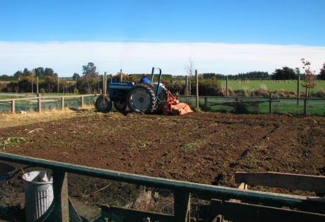 When you live in the country and have a large family, a large vegetable garden is a great thing. Ours is 140m2, or 1500 square feet. In previous years, Katrina’s Dad had use the rotary hoe to get the garden ready for planting, and its taken 6-8 hours of work. This year … a slighter bigger machine π and 15 minutes. Sweet!