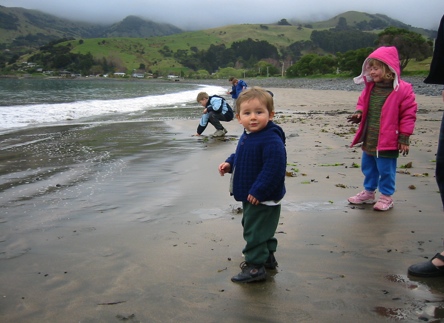 – Looks of amazement from toddlers on seeing and hearing the sea for the first time … and tentative giggles as the wave crash loudly – very loudly – down.