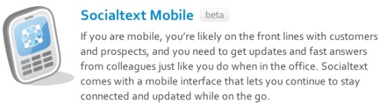 – By going for a platform independent way of supporting mobile devices, Socialtext enables a greater covering of the market. I don’t know why Windows Mobile is excluded.