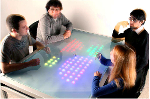 “In this paper we describe a novel interactive table designed for supporting group collaboration. The table, Reflect, ad- dresses the issue of unbalanced participation during group discussions. By displaying on its surface a shared visual- ization of member participation, Reflect is meant to encour- age participants to avoid the extremes of over- and under- participation. We report on a user study that validates some of our hypotheses on the effect the table would have on its users. Namely we show that Reflect leads to more balanced collaboration, but only under certain conditions. We also show different effects the table has on over- and under-participators.“