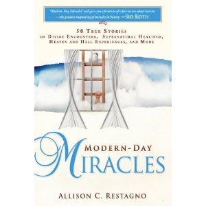 In mid-November 2009, Allison Restagno contacted me via email and shared a project that she wanted to work on – a book that documented God’s work in the lives of people today, and requested permission to include my testimony in her upcoming book. I gave her my permission, and Allison has done a sterling job of making the book a reality – through many challenges, roadblocks, and opposition. Praise God, the result is now available for purchase on Amazon: Modern-Day Miracles: 50 True Miracle Stories of Divine Encounters, Supernatural Healings, Heaven and Hell Experiences, and More. My testimony is included, as chapter 2.