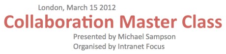 I’m delighted to announce that I will be presenting a public master class on collaboration in London on March 15. Martin White at Intranet Focus is organizing the event.